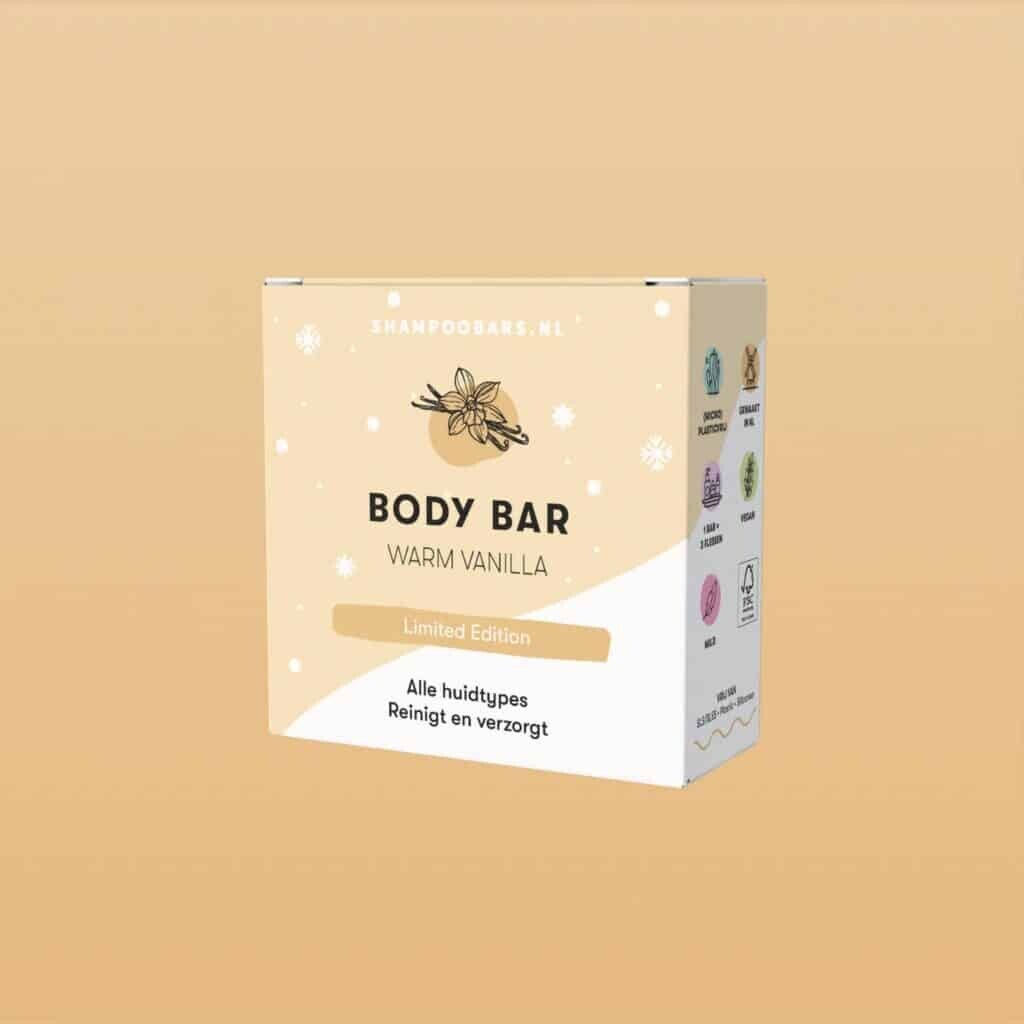De Body Bar Warm Vanilla is een milde, zeepvrije douchebar voor dagelijks gebruik. De combinatie van sheabutter, jojobaolie en amandelolie zorgt voor een zachte reiniging zonder de huid uit te drogen. De warme vanillegeur blijft subtiel hangen en geeft je een knus, ontspannen gevoel, helemaal klaar om met een warme chocolademelk onder een dekentje op de bank te gaan zitten.