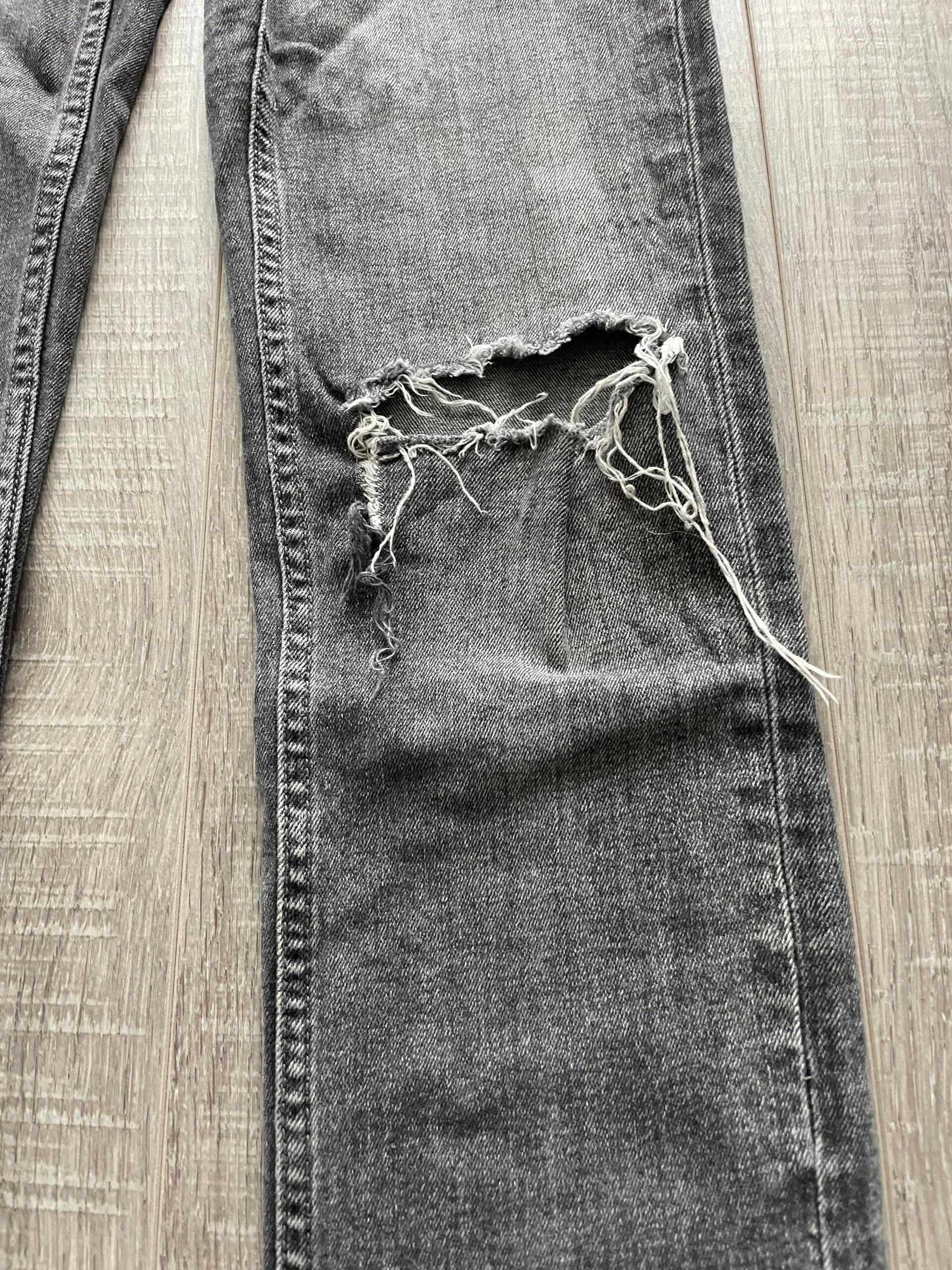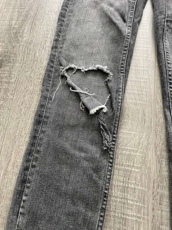 Bijzonderheden: Model met gescheurde knieën en split in de broekspijpen.