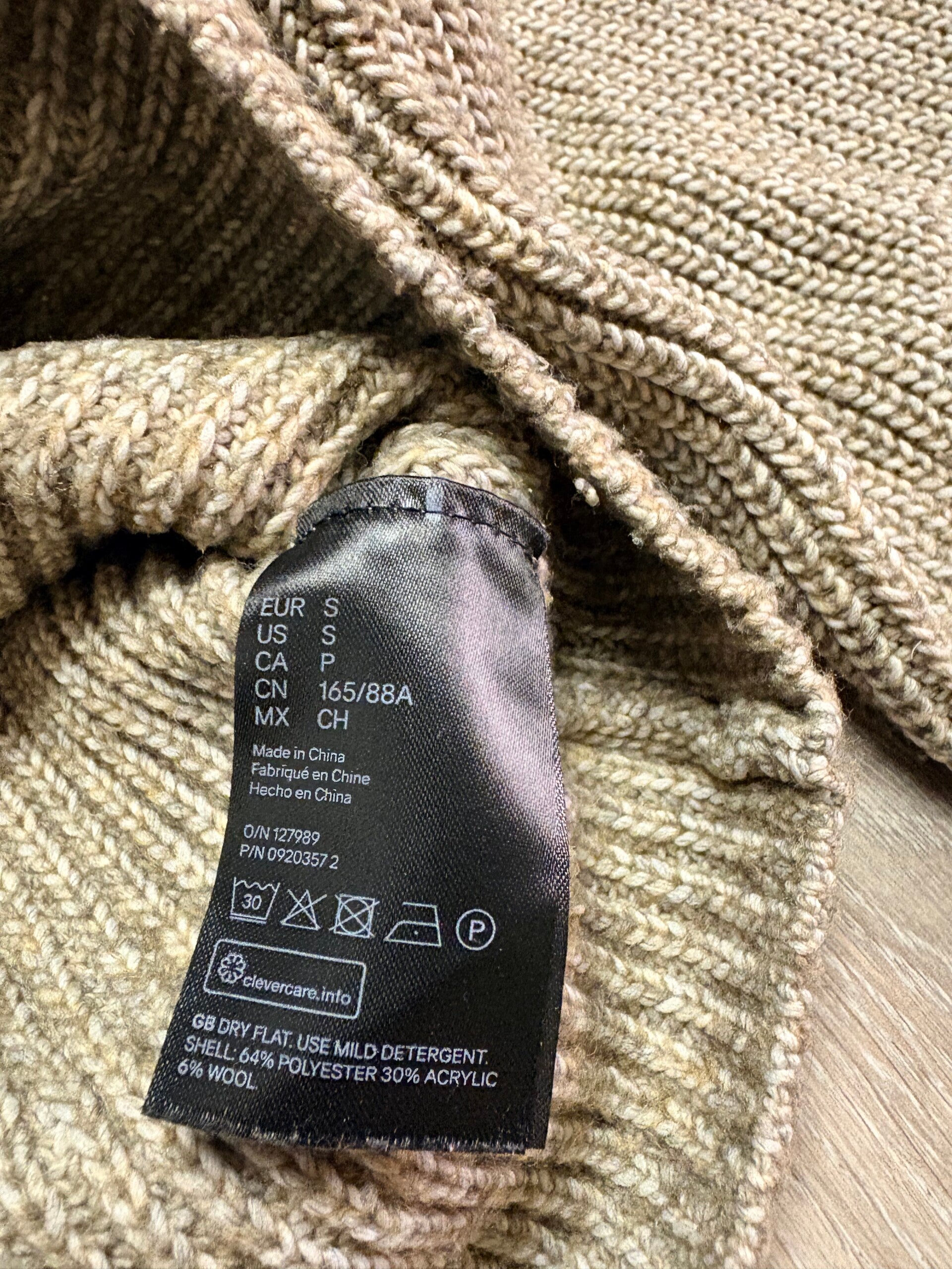 Materiaal: 64% polyester, 30% acryl, 6% wol