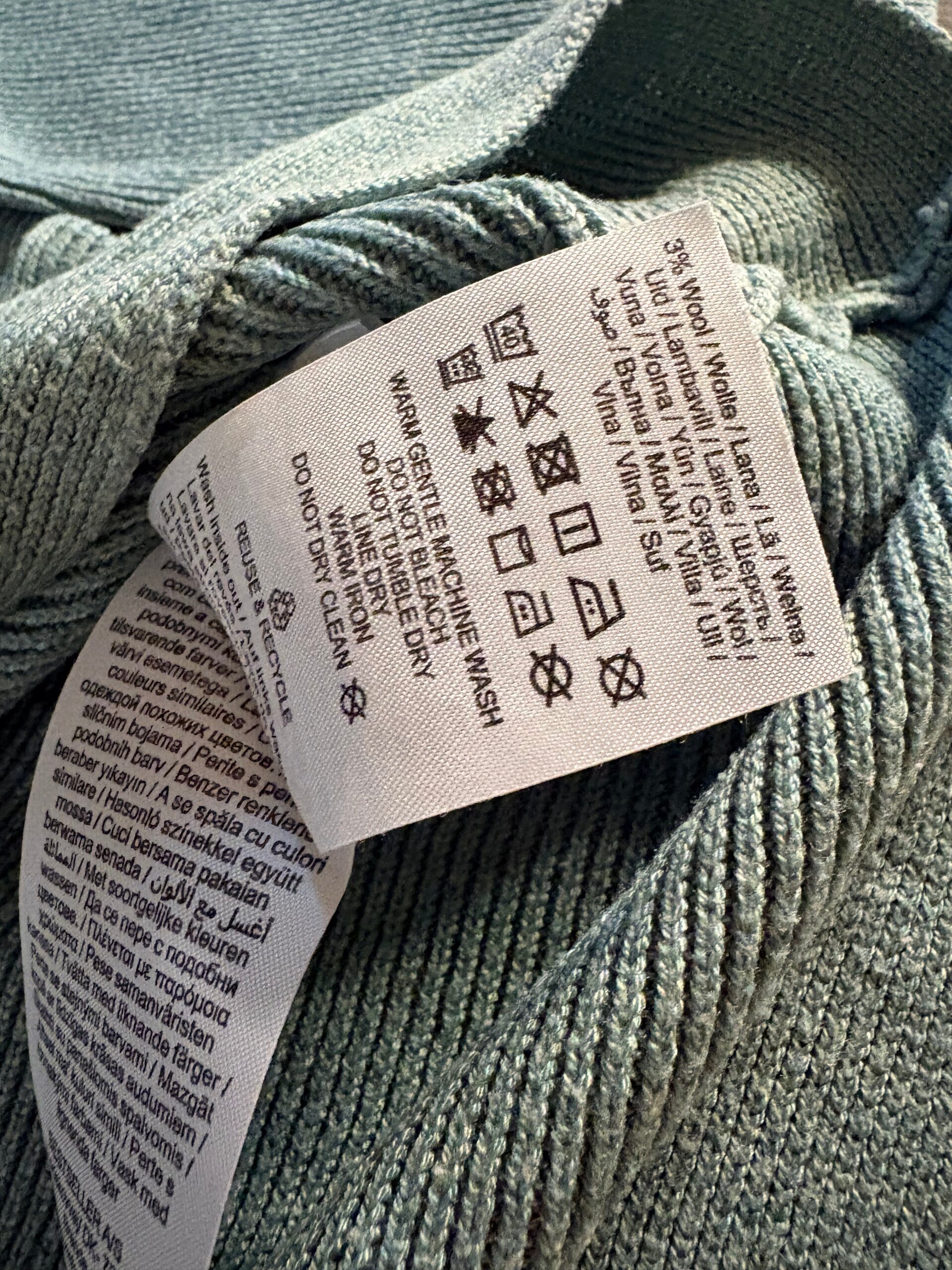 Materiaal: 63% polyester, 34% viscose, 3% wol
