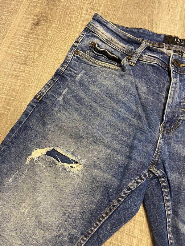 Bijzonderheden: model met gescheurde plekken op de broekspijpen.