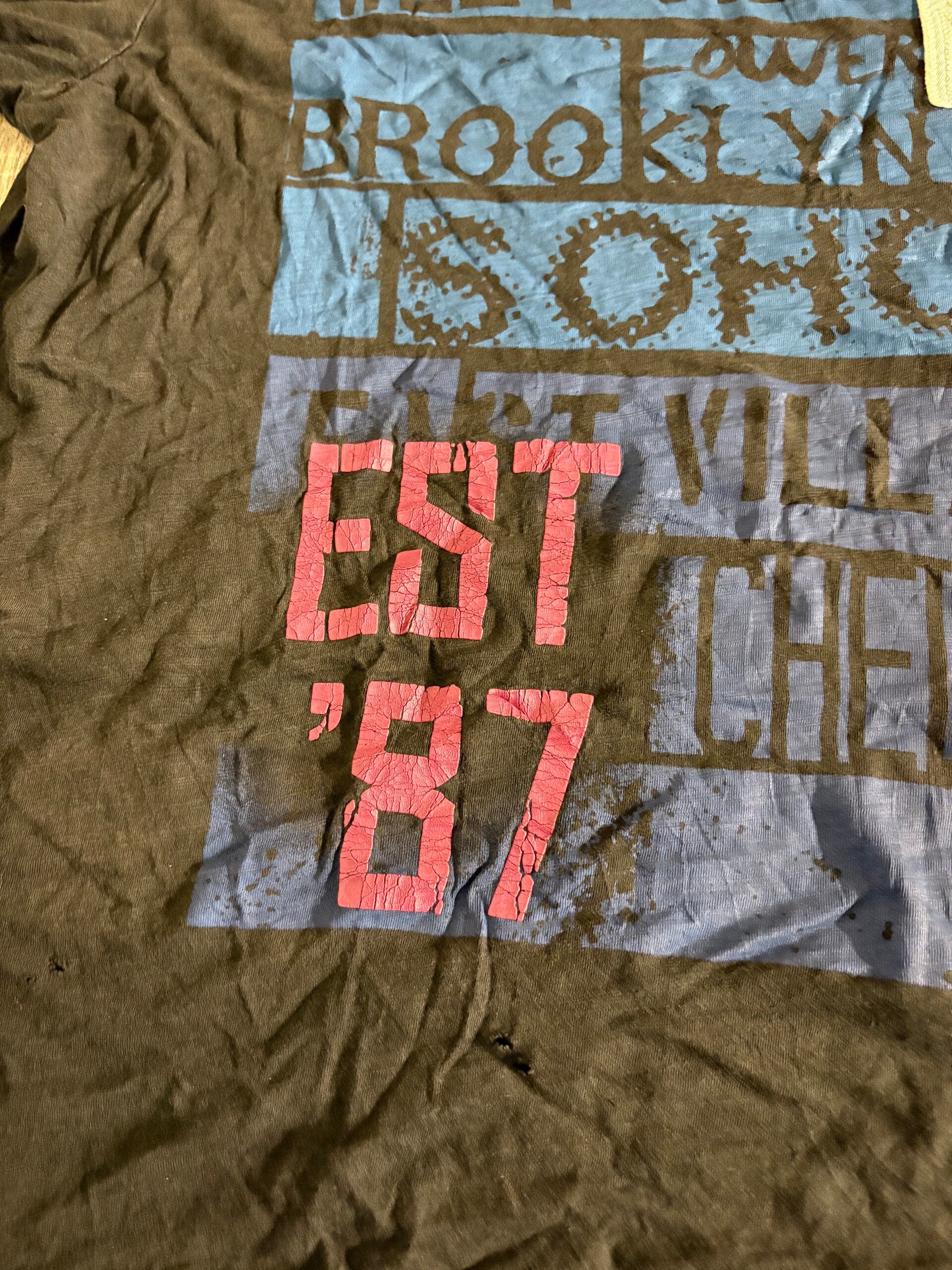 Bijzonderheden: vaker gedragen, slijtage op de print zichtbaar.