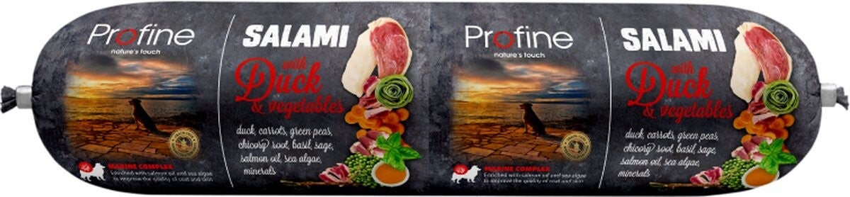 Profine SALAMIworst is een heerlijke en verantwoordelijke traktatie voor honden, perfect om je huisdier te verwennen met smakelijk en gezond voer.